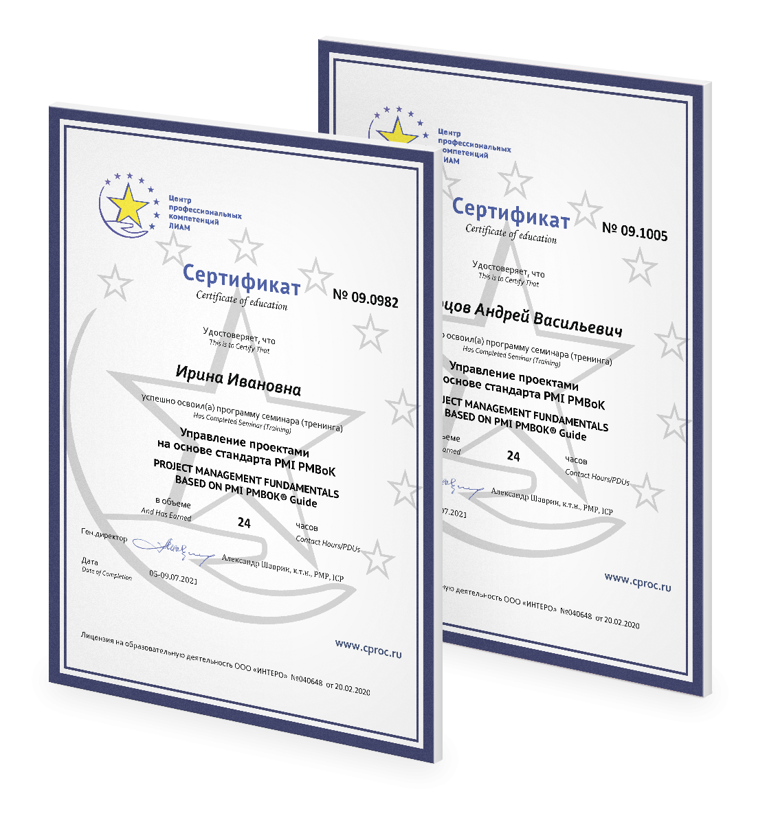 Прошли обучение по направлению проектного управления по стандарту PMI PMBoK и другим программам, повышающим проектные и общеменеджерские компетенции